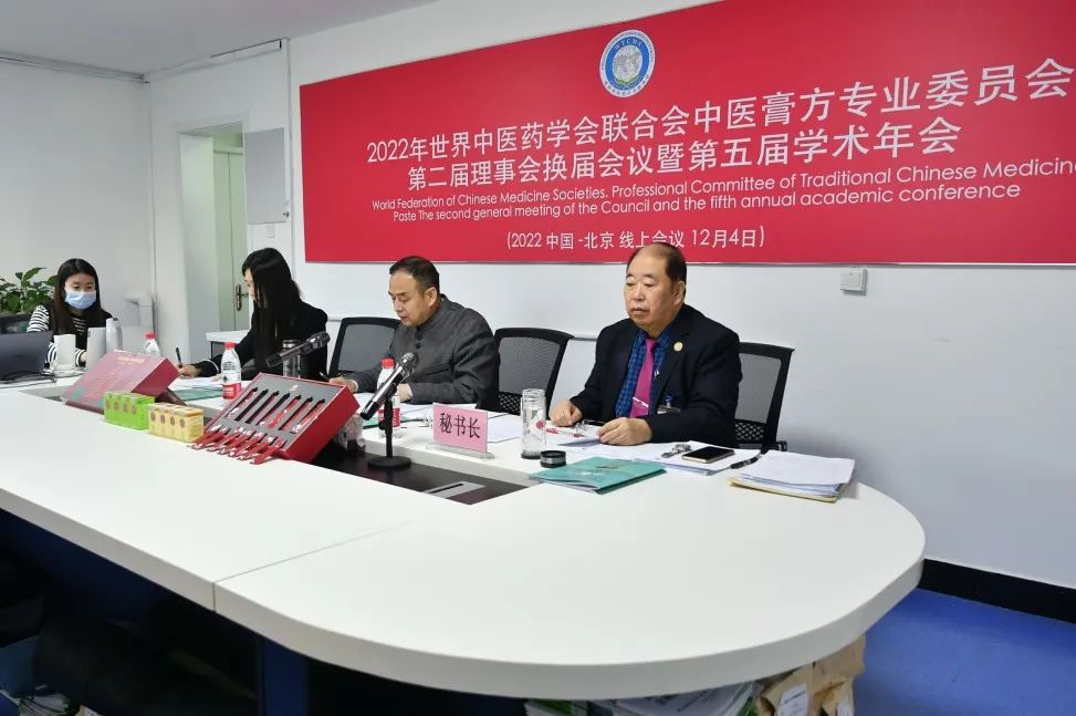 世界中聯(lián)主席馬建中通過(guò)視頻方式致辭,向參加中醫(yī)膏方專業(yè)委員會(huì)第二屆理事會(huì)換屆會(huì)議的線上嘉賓表示歡迎。他講到,近年來(lái),黨和國(guó)家高度重視中醫(yī)藥的發(fā)展,出臺(tái)了一系列支持政策,黨的二十大報(bào)告再次強(qiáng)調(diào)“促進(jìn)中醫(yī)藥創(chuàng)新傳承發(fā)展”,這些都為中醫(yī)藥事業(yè)發(fā)展提供了堅(jiān)強(qiáng)保障。世界中聯(lián)是全球最大的中醫(yī)藥國(guó)際學(xué)術(shù)組織,在中醫(yī)藥深入?yún)⑴c全球治理中持續(xù)發(fā)揮著重要作用。在中醫(yī)藥深入?yún)⑴c全球治理中持續(xù)發(fā)揮著重要作用。膏方是中醫(yī)養(yǎng)生文化的精髓,在進(jìn)補(bǔ)方面有深厚的臨床經(jīng)驗(yàn),膏方即可治療慢性疾病又可滋補(bǔ)大病過(guò)后的虛弱病體,是兼顧治療和補(bǔ)虛雙重作用的良劑。中醫(yī)膏方專業(yè)委員會(huì)在董瑞會(huì)長(zhǎng)帶領(lǐng)下,在組織學(xué)術(shù)會(huì)議和開(kāi)展國(guó)際交流、抗擊疫情、科研創(chuàng)新、醫(yī)療幫扶等方面做了大量工作,促進(jìn)了中醫(yī)膏方走向世界,關(guān)注民間中醫(yī)藥瑰寶的挖掘整理,通過(guò)政協(xié)提案促進(jìn)民間膏方傳承及其制作工藝的搶救,為保護(hù)民間膏方獻(xiàn)技出力,開(kāi)展科研課題與臨床實(shí)踐提高藥方、膏方的臨床療效,踐行“療效是中醫(yī)藥生命線”的真理,發(fā)出倡議鼓勵(lì)理事們積極投入抗疫,第一屆理事會(huì)工作取得了突出成績(jī),榮獲了世界中聯(lián)頒發(fā)的“抗擊疫情榮譽(yù)集體”稱號(hào)和2020-2021年度先進(jìn)分支機(jī)構(gòu)三等獎(jiǎng)。希望新一屆理事會(huì)在董瑞會(huì)長(zhǎng)領(lǐng)導(dǎo)下,能夠充分發(fā)揮世界中聯(lián)平臺(tái)優(yōu)勢(shì),繼續(xù)辦好“一帶一路”雁棲湖中醫(yī)膏方國(guó)際高峰論壇,加快膏方相關(guān)標(biāo)準(zhǔn)起草,促進(jìn)膏方產(chǎn)品和市場(chǎng)開(kāi)發(fā),加強(qiáng)國(guó)際交流交往,助力中醫(yī)藥走向世界。