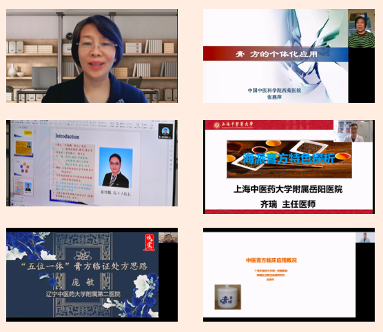 開(kāi)幕式結(jié)束后,大會(huì)開(kāi)展了線上學(xué)術(shù)報(bào)告和學(xué)術(shù)交流活動(dòng)。董瑞會(huì)長(zhǎng)做了《中醫(yī)膏方概論》的學(xué)術(shù)報(bào)告;北京中醫(yī)藥大學(xué)蘇慧萍教授、中國(guó)中醫(yī)科學(xué)院西苑醫(yī)院張燕萍教授、港澳臺(tái)中醫(yī)醫(yī)師聯(lián)合促進(jìn)會(huì)總會(huì)會(huì)長(zhǎng)盧致鵬教授、上海中醫(yī)藥大學(xué)岳陽(yáng)中西醫(yī)結(jié)合醫(yī)院齊瑞教授、遼寧中醫(yī)藥大學(xué)附屬第二醫(yī)院龐敏教授、廣西中醫(yī)藥大學(xué)第一附屬醫(yī)院賓博平教授六位中醫(yī)膏方專業(yè)委員會(huì)副會(huì)長(zhǎng)分別作了《膏方防治慢阻肺的組方用藥特點(diǎn)》《膏方的個(gè)體化應(yīng)用》《脾胃系統(tǒng)(慢性胃炎疾?。┑闹形麽t(yī)論述臨床觀察與證型研究》《海派膏方的特點(diǎn)》《膏方臨床應(yīng)用思路》《中醫(yī)膏方臨床概論》的學(xué)術(shù)報(bào)告,并與在線專家學(xué)者進(jìn)行了互動(dòng)交流。中醫(yī)膏方專業(yè)委員會(huì)第二屆理事會(huì)換屆會(huì)議暨第五屆學(xué)術(shù)年會(huì)取得了圓滿成功。