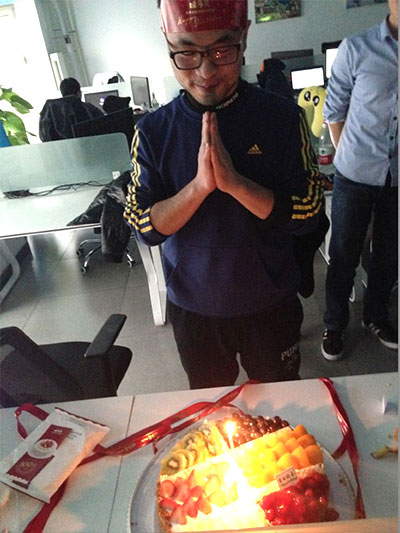 接下來“傳統(tǒng)生日會”照例為12月份過生日的同事點燃蠟燭(本月為兩位天坦伙伴),唱起祝福的生日歌,分享香甜可口的蛋糕,頒發(fā)“功夫熊貓”,這可是真正的功夫熊貓,在集齊24式功夫熊貓的同事,可以換到房子的鑰匙,這也是“壽星”最大的幸運,同時也是為了激勵天坦人勇往拼搏、直線進取設置的最大獎項。