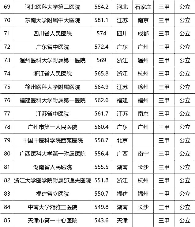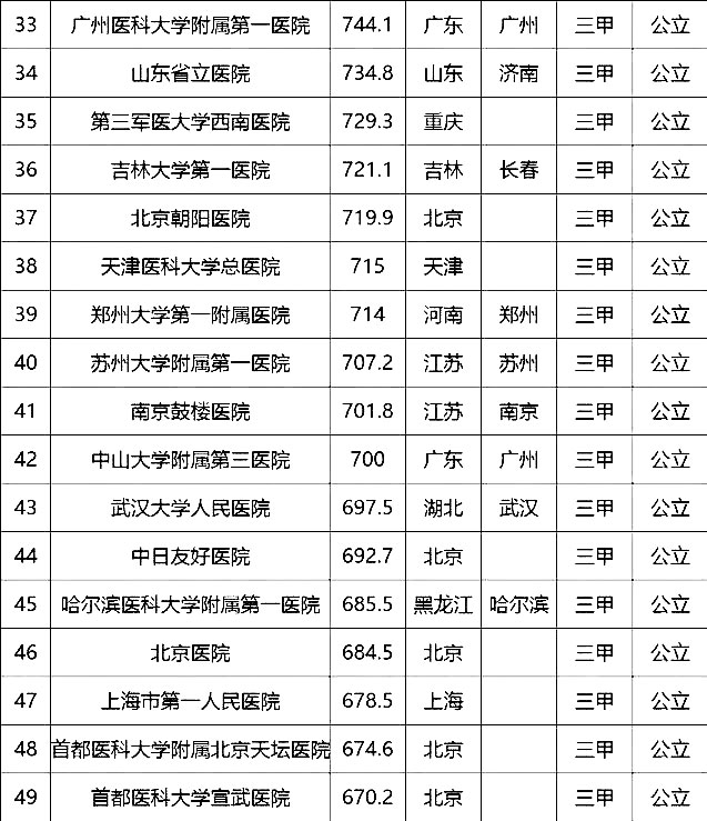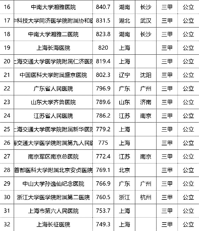 “100強(qiáng)”榜單中,入圍最多的三個(gè)省市分別是北京(16家醫(yī)院)、上海(13家醫(yī)院)、廣東(9家)。“100強(qiáng)”共覆蓋32個(gè)城市,包括4個(gè)直轄市(36家醫(yī)院)、23個(gè)省會(huì)城市(59家醫(yī)院)、5個(gè)地級(jí)市(5家醫(yī)院)??傮w看,城市的醫(yī)院平均得分和上榜機(jī)構(gòu)數(shù)有一定的相關(guān)性,上榜機(jī)構(gòu)數(shù)多的城市一般得分均值較高,說明這些城市醫(yī)院整體實(shí)力較高。